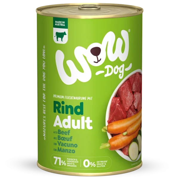 - Conseil de goût WOW : la teneur élevée en protéines de bœuf prépare ton compagnon à fourrure à toutes les aventures !